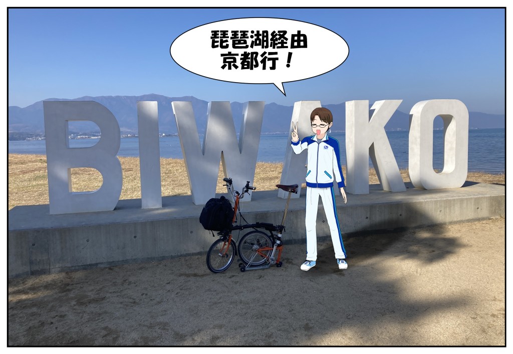 今週は京都滋賀に旅行に行ってきました。車で滋賀まで。駐車場に停めてブロンプトンで移動。琵琶湖沿いに移動して、サイクリストの聖地に行きました。